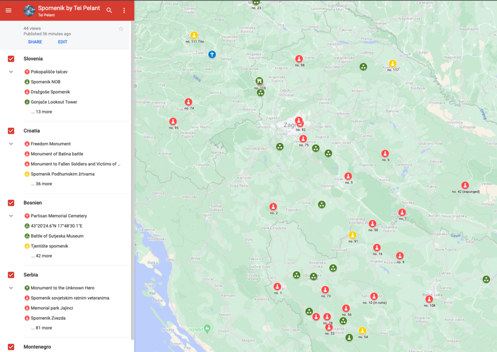 Spomenik Google MY MAPS Map - by Tei Pelant